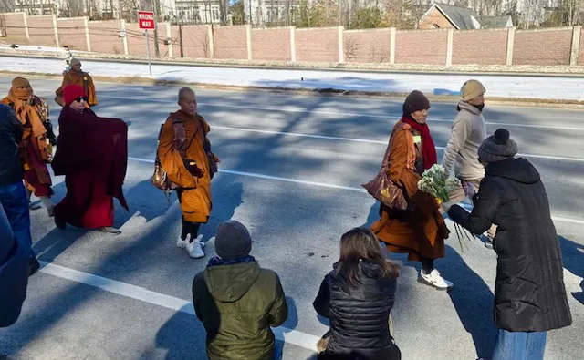 Many of them come from places like Vietnam and other Southeast Asian communities shaped by diaspora — places where war is not theory but memory. And here they are, walking unarmed, showing compassion to all beings, through a country historically connected to the armed conflicts that shaped many Southeast Asian Buddhist communities now living here.